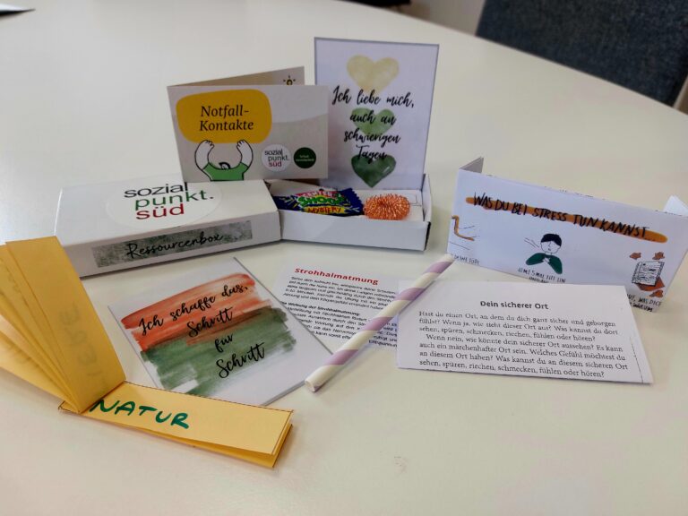 Kooperationspartner*innen: Mittelschulen des Bezirks DeutschlandsbergProjektbeschreibung: Im Rahmen der Schulsozialarbeit wurde ein Workshop entwickelt, welcher in den 2. Klassen aller Mittelschulen im Bezirk Deutschlandsberg von den Fachkräften der Schulsozialarbeit im Schuljahr 2025/26 und darüber hinaus umgesetzt wird. Vor dem Hintergrund, dass psychische Belastungen von Jugendlichen in den vergangenen Jahren deutlich zugenommen haben, soll der Workshop zur Resilienzförderung und Ressourcenstärkung beitragen. Neben der inhaltlichen Auseinandersetzung mit den Themen Mentale Gesundheit, Resilienz und Ressourcen, werden die Jugendlichen dabei begleitet, eigene Ressourcen zu entdecken. Im Rahmen der Workshops stellen die Jugendliche persönliche Ressourcenboxen her. Darin sind Materialien enthalten, die etwa bei der Emotionsregulierung unterstützen, Übungen, die die persönlichen Ressourcen hervorheben sowie Übungen und Materialien, die in persönlichen psychosozialen Krisen unterstützen können.