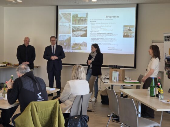 Bewusstseinsbildung auf verschiedenen Ebenen steht im LEADER-Kooperationsprojekt „Baukultur 2025+“ der Regionalmanagement Südweststeiermark GmbH im Mittelpunkt. Dafür fand Mitte März im Rüsthaus St. Nikolai im Sausal wieder ein Baukultur-Frühstück statt. Die Veranstaltung brachte Entscheidungsträger*innen, Bürgermeister*innen und Vertreter*innen der Bezirks- und Landesverwaltung zusammen. Die Ergebnisse der Lehrveranstaltung „Raumplanung wirkt? Am Beispiel der Gemeinde St. Nikolai im Sausal“ der Technischen Universität Graz wurden präsentiert, und über die Herausforderungen der Raumplanung wurde diskutiert.