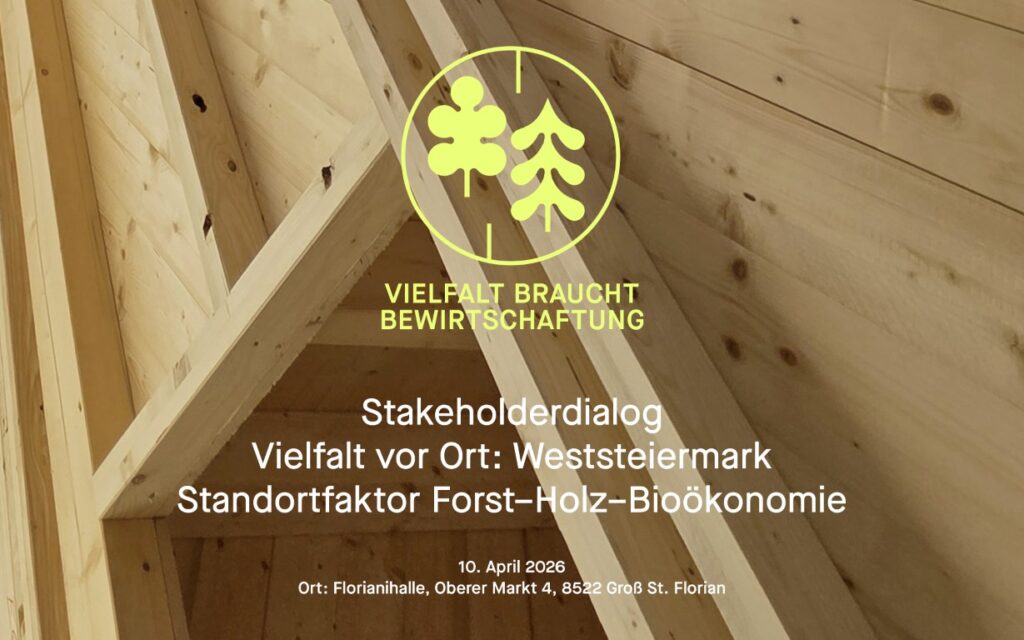 Wie bleibt mehr Wertschöpfung in der Region, mit Holz als Baustoff, kurzen Wegen und smarten Kreisläufen? Beim Stakeholderdialog in Groß St. Florian bringen wir Betriebe, Gemeinden, Planung, Bildung, Regionalentwicklung und Initiativen an einen Tisch und arbeiten gemeinsam an konkreten Fragestellungen.
