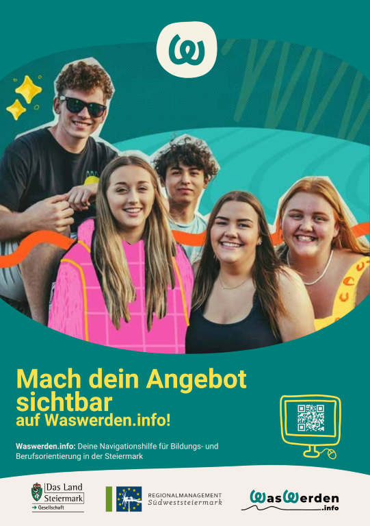 Auf Waswerden.info findest du aktuellen Veranstaltungen rund um Bildung, Beruf und Zukunftschancen in der Südweststeiermark – von Tagen der offenen Tür über Bildungsmessen bis hin zu Workshops zur Berufsorientierung.